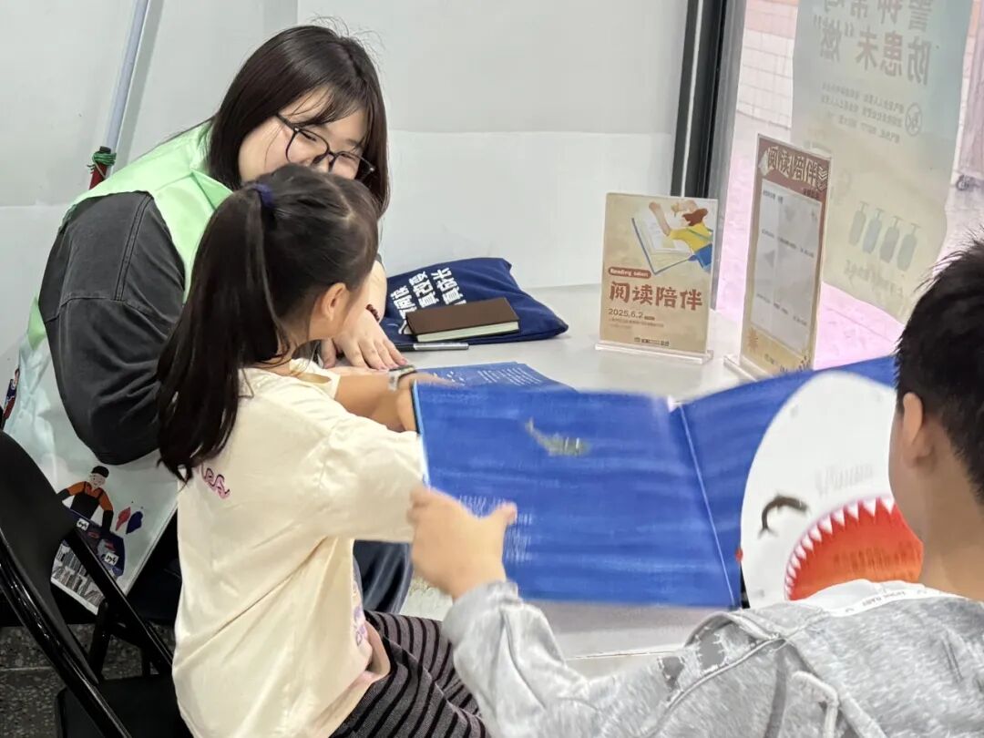 菜场书屋 / 6月,菜场书屋阅读陪伴活动正式启动。虹口图书馆携手多阅公益,于线下位于奎照路的菜场社区服务点开展了1场以自主阅读为主题的陪伴小组活动,志愿者和孩子们共同在阅读中成长;线上方面,成功招募8名复旦大学志愿者参与阅读陪伴活动,期待其在未来暑期活动中展现积极风采。暑期将至,阅读陪伴活动将持续开展,盼望在菜场书屋中定格更多美好的阅读画面。